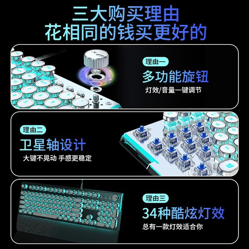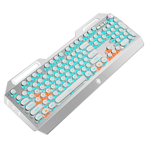采用金属材质面板,抗磨耐摔,拥有强悍的耐用性和高低键位布局,适应人手敲击键盘的运动弧线,手感舒适。