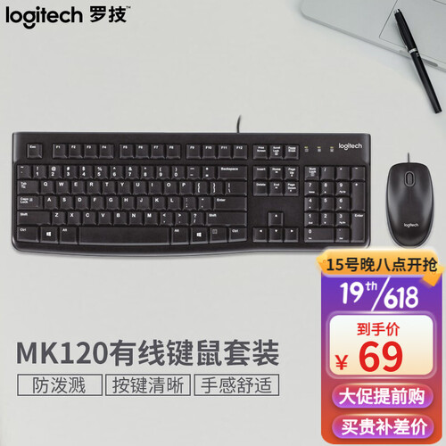 罗技 防泼溅多功能有线键盘