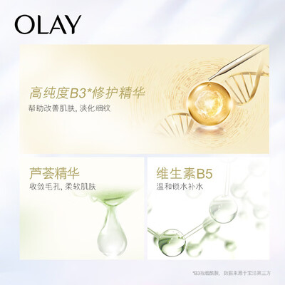 蕴含修护精华,改善肤质,淡化细纹,芦荟精华,让肌肤更加柔嫩,维生素B5的添加,温和锁水。