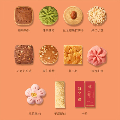 什锦礼盒里拥有葡萄奶酥、抹茶曲奇、果仁小饼等丰富种类,满足挑剔味蕾。口感细腻,入口释放浓郁香味,撩动味蕾。