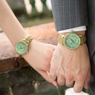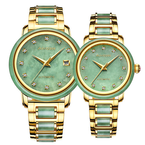 精选天然玉石打造表盘,温润有光泽,同时寓意幸福美满。内置自动机械机芯,走时稳定可靠,减少手表更换次数。