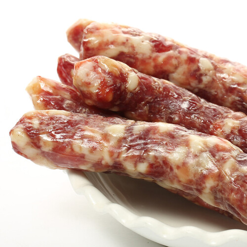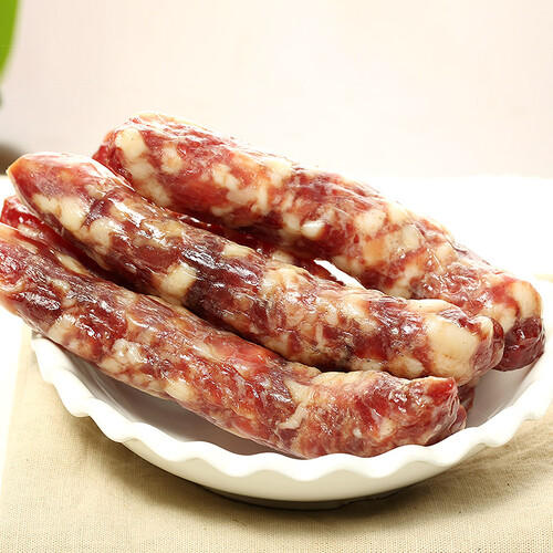 这款香肠真空包装,肉质是三分肥七分瘦,肥瘦适宜,采用烘干和晾晒工艺制作,瘦肉不柴。