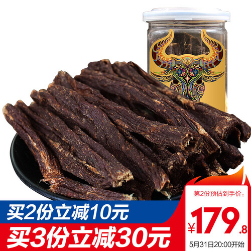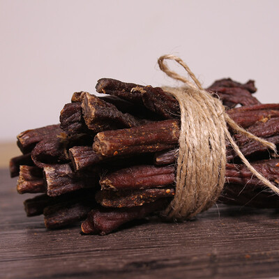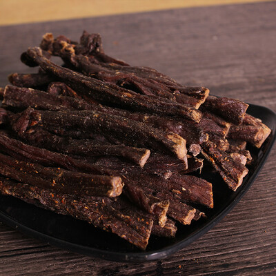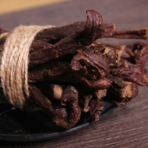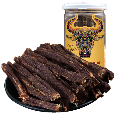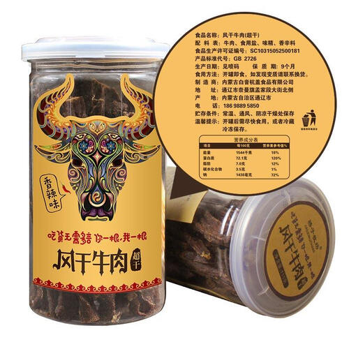 来自草原的新鲜黄牛后腿肉,去筋膜去肥油,使肉干质地更劲道。以传统手工炭烤方式制作,风干到9成干,细细咀嚼风味更佳。