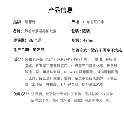 瑷菲诗 芦荟水润 护发素
