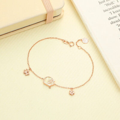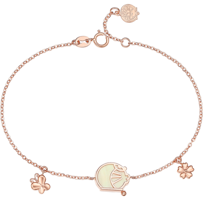 潮宏基独家id官方授权,玫瑰金和贝母材质,打造出这条惟妙惟俏的手链,层次多样流光溢彩,配上小花和蝴蝶细节点缀,闪耀吸睛。