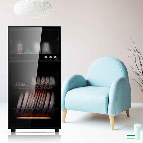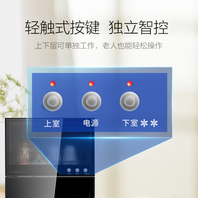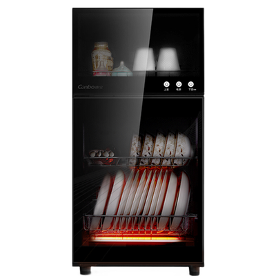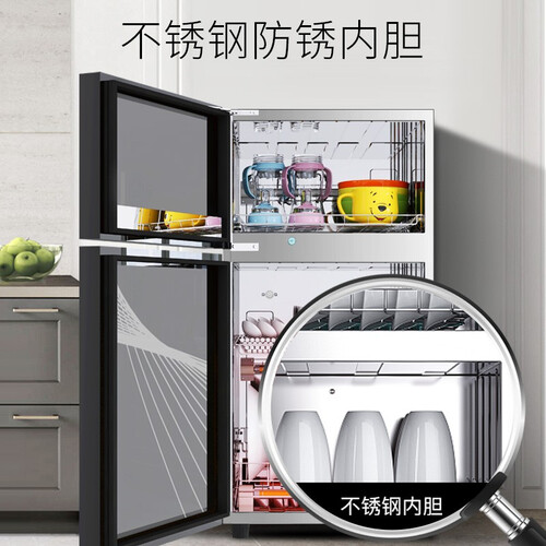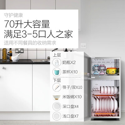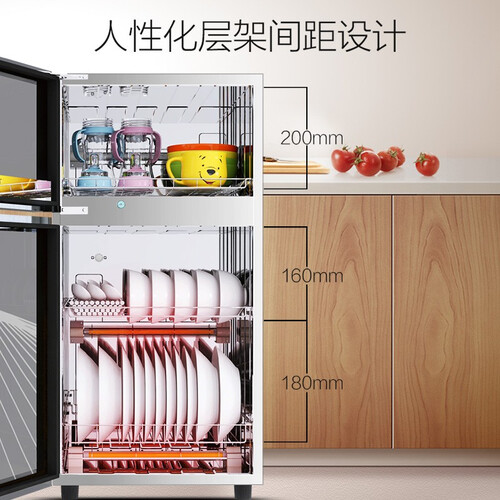 占用空间小,方便摆放。上层采用臭氧杀菌,中温烘干抑制细菌滋生。下层采用高温杀菌,快捷方便。轻触式按键,操作简单。