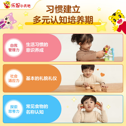 13到24月龄的宝宝正处于认知培养的关键期,内含常见事物名称认知,提升探索思考力。可以培养基本礼貌礼仪,社会适应力更强。
