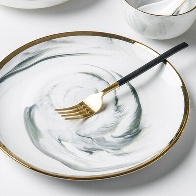 轻奢不规则大理石纹,自然流畅,简约大气,尽显简约北欧风;内部边缘手绘金边环绕,流线边缘,时尚高雅,外形美观大气。