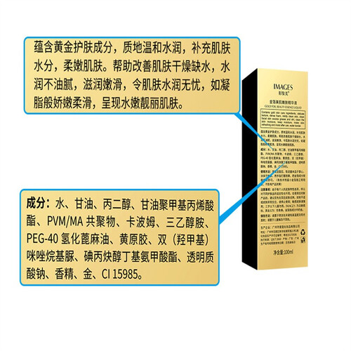 24K金箔玻尿酸精华,帮助改善表情肌收缩,淡化细纹。添加透明质酸钠,滋润保湿,保持肌肤细腻柔嫩,富有弹性。
