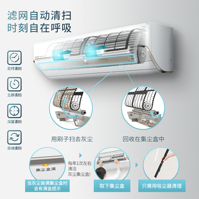 搭载滤网自清扫的功能,一键启动除尘模式,带来自由呼吸。内含强速冷暖设备,不畏寒不怕热,带来更佳生活体验。