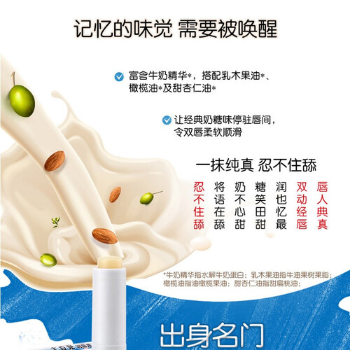 很可爱的大白兔外包装,满满的少女心。味道也是浓浓的奶香味道,并富含牛奶精华并搭配乳木果油等,能让双唇更加滋润顺滑哦。