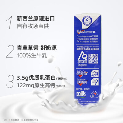 优选新西兰牧场直供进口奶源,不添加防腐剂、色素、香精等人工化学合成物,可放心饮用。奶香浓郁,口感清醇不甜腻。