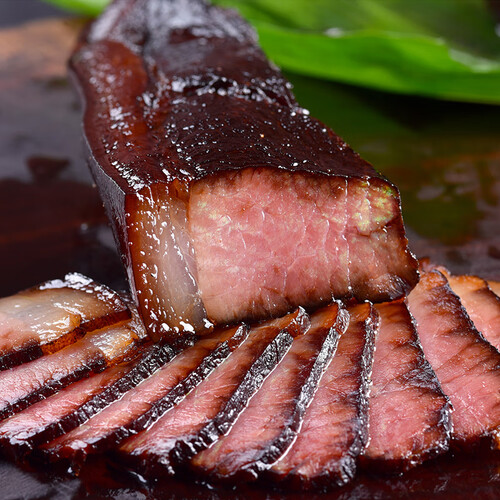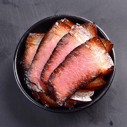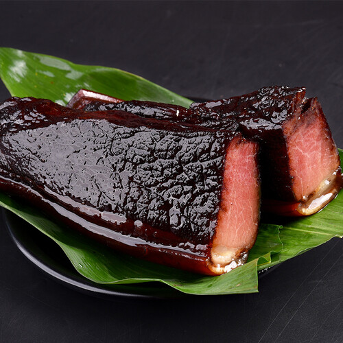 甄选农家黑猪肉制作,肉质健康,肥瘦均匀,肥而不腻口,瘦而不塞牙,让人吃了很喜爱。采用自然晾晒,无烟熏,肉色更自然鲜艳。