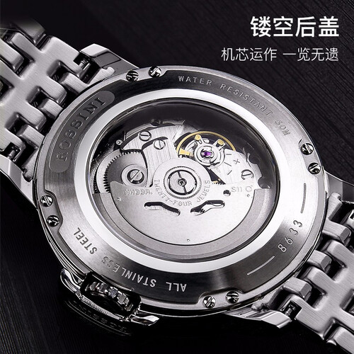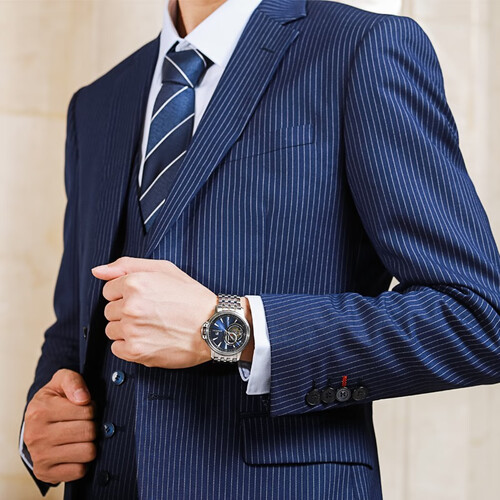 此款腕表以神秘的镂空表盘呈现,更显成熟男人魅力。搭配耐磨不锈钢表带,打破急促秒针的律动,让你享受悠闲自在的时光。
