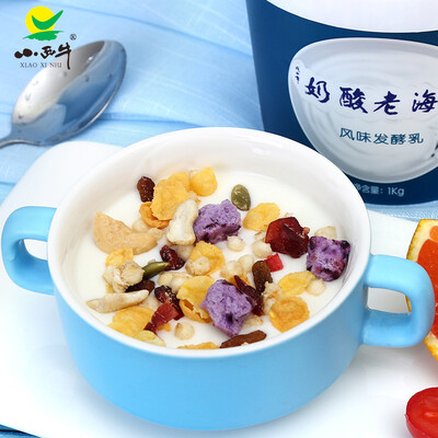 这款老酸奶口感很细腻光滑,粘稠度也很好,不是很酸,加上水果粒或干果也好吃。