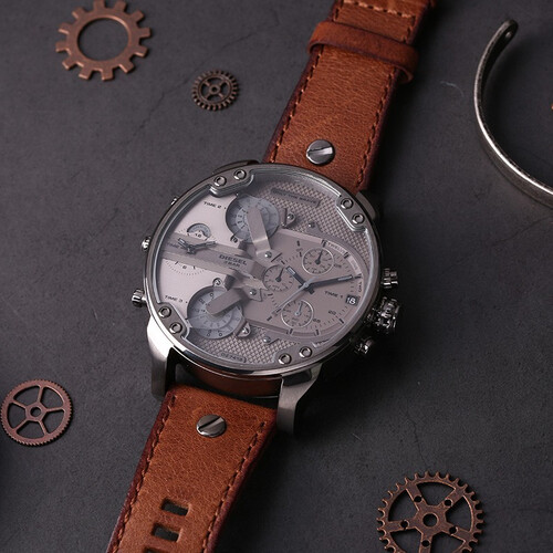 时尚多功能大表盘,个性炫酷,彰显硬朗气质。爆裂纹皮革表带,质地柔韧,与大气表盘结合相得益彰,更显潮男风范。
