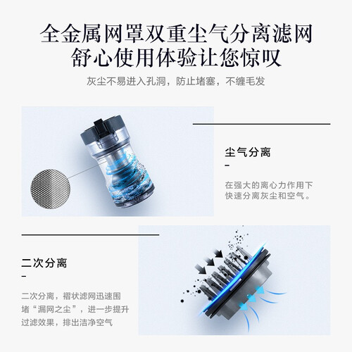 拥有出色的降噪技术,再也不怕刺耳的噪音影响做家务的心情,安静使用。采用轻量化机身,移动起来不费力,轻松使用。