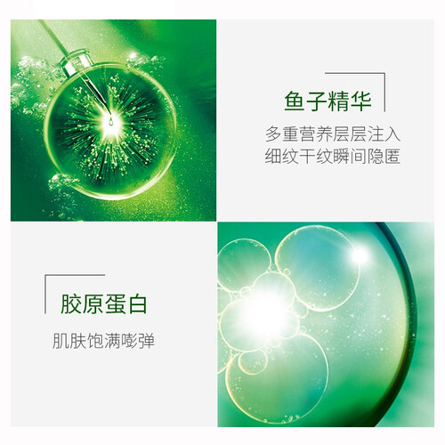 提取鱼子酱精华,蕴含多种营养物质,全方位的滋养你的肌肤。特别添加胶原蛋白成分,修护受损助力再生,再现丰盈饱满肌。