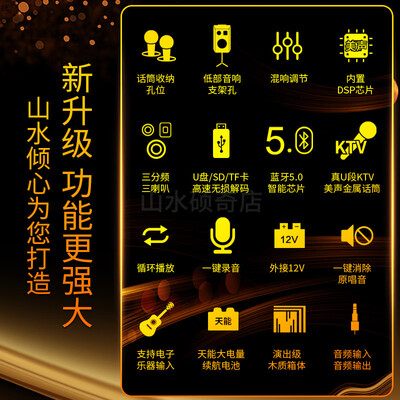 内置大容量电池,续航动力强劲,延长使用时间。选用专业远程喇叭设计,低音震撼澎湃,穿透力更强。