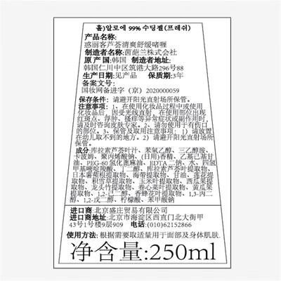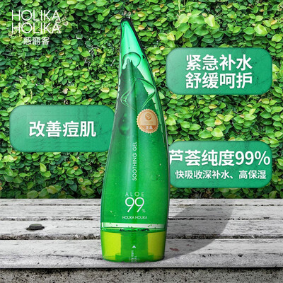 新鲜芦荟汁液深层补水保湿,镇定舒缓肌肤。清爽无油,缓解粗糙、松弛,对于痘痘发炎症状,可以改善修护。