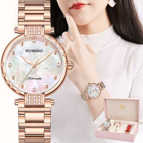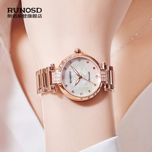 来自孔雀女神的灵感,让洁白的羽毛飘荡在腕表之间,衬托优雅知性的女性形象。瓣形的夜光指针,让黑夜不再茫然。