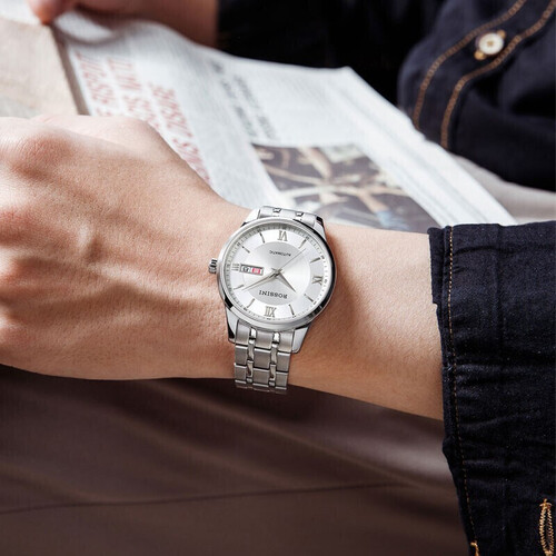 实用双历设计,直观把握时间,体验便捷生活。大开面表盘设计,视野开阔,读时明了。