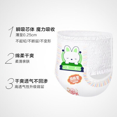 双层立体侧围,避免出现漏尿的情况,让宝妈睡个好觉。内含高分子吸水材质,快速吸收水分,真正实现整天干爽。