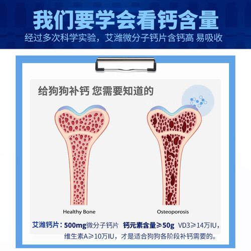 富含丰富的分子钙成分,营养分子小,更易于宠物吸收。精选每一种原材料制作而成,从源头把控品质,狗狗入口更安心。