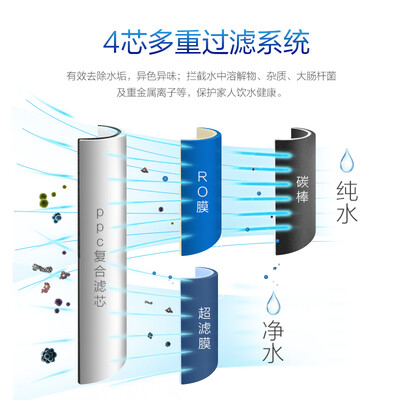 内部搭载的多重过滤系统,能有效去除异味,拦截水中的重金属等。FMS智能滤芯管理系统的设计,可多维度监测滤芯寿命。