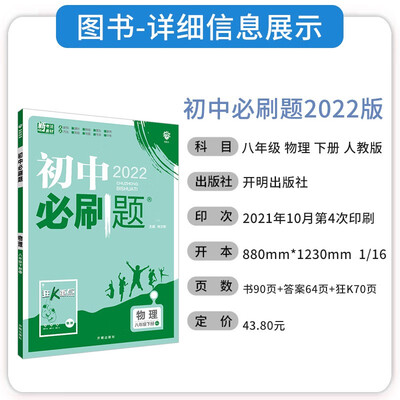 刷题是一个复习知识点、查缺补漏的途径,这套书根据八年级的物理知识点精选了海量的题目,覆盖重难点和易错点,学生可全面复习。