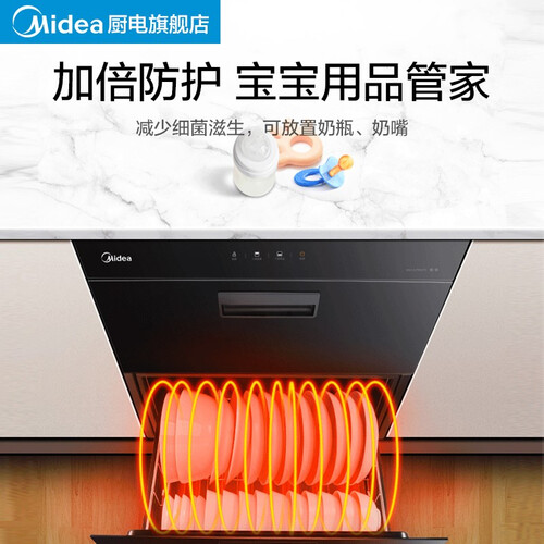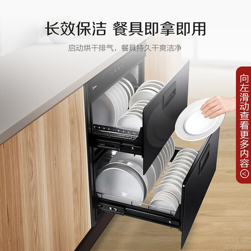 具有消毒烘干功能,消灭餐具上的细菌,烘干水分,让碗蝶长久保持洁净卫生状态。隐藏式拉手设计,避免开合时磕碰受伤。