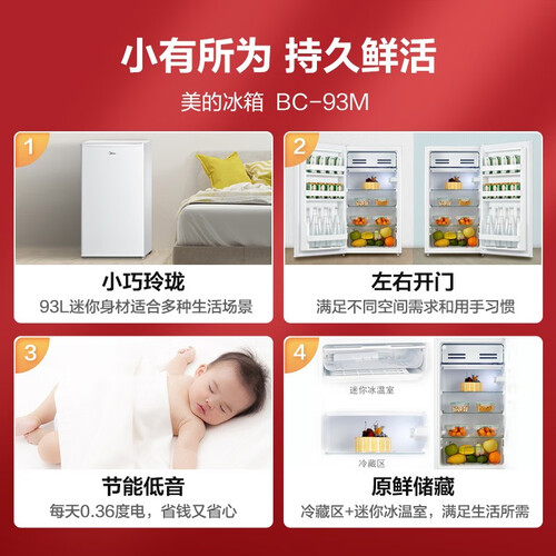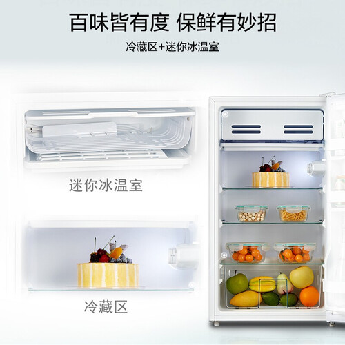 小巧机身不占地,简约纯白色调,适应多种生活场景。93L储鲜空间,可调节温度,轻松满足你的不同保鲜需求。