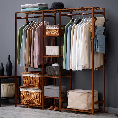 顶部大平台设计,有效利用每一寸空间。加粗实心挂杆,用料厚实,承重力强,可以承受更多的衣物。档条间隙紧密,置物不掉落。