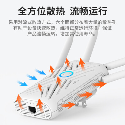 支持AP模式,将有线转无线,全家畅享无线精彩。六面散热孔设计,利用对流带走热量,长时间流畅运行。