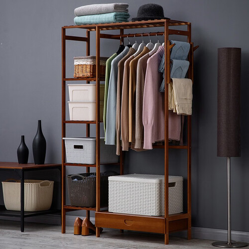 立式楠竹衣帽架,用材环保健康,整体承重力好,能够满足日常挂放需求。侧面采用多层设计,整洁摆放置物盒。