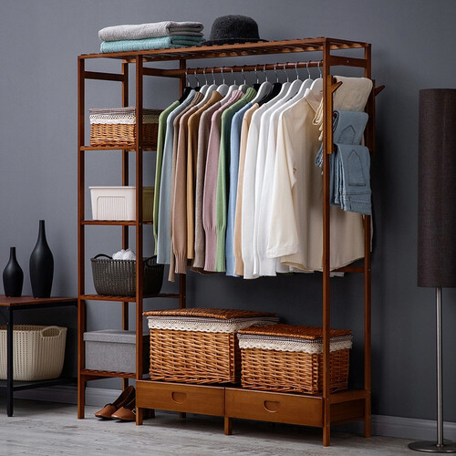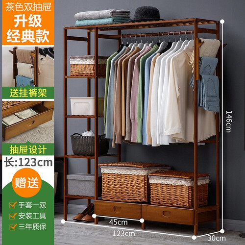 楠竹打造,坚固耐用,结构稳定不摇晃,大收纳空间设计,可以收纳更多衣物,底部双抽屉设计,可以收纳零小物件,解决收纳烦恼。