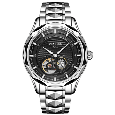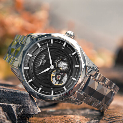 表身整体样式简洁,采用黑色表盘设计,呈现出极具质感的个性。人工合成蓝宝石表镜,硬度特别高,耐磨更经用。