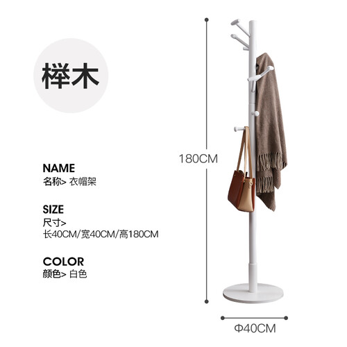 全榉木材质打造的衣帽架质地坚硬耐磨,使用寿命更长,搭配腰鼓型挂杆,既能有效防滑,又能防止划伤衣物。