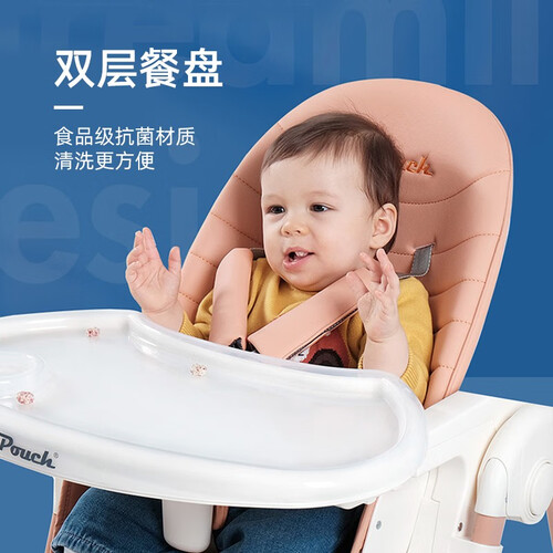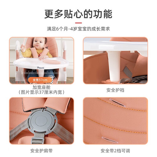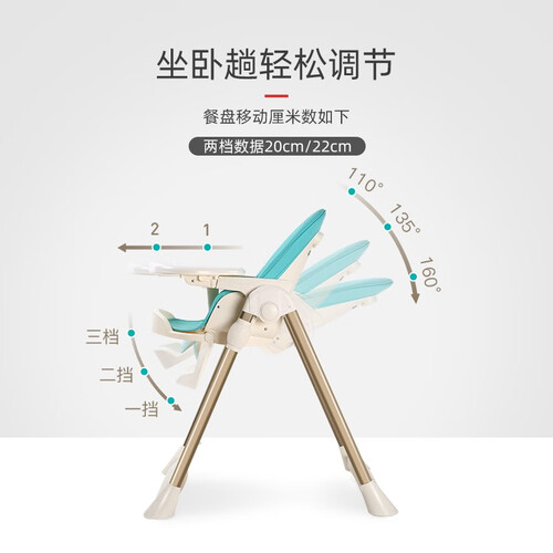 档位调节的设计满足孩子吃完就睡的天性,一键调节,让孩子躺着睡、靠着玩、坐着吃。马蹄形腿部设计,安全稳固,让爸妈更放心。