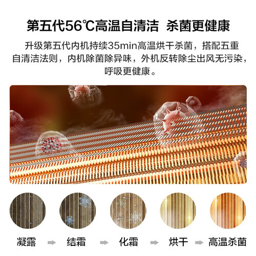 采用专利钛金自洁技术,出风清新无异味,制冷暖效率更高。加宽出风口设计,送风范围更广,舒适全屋角落。