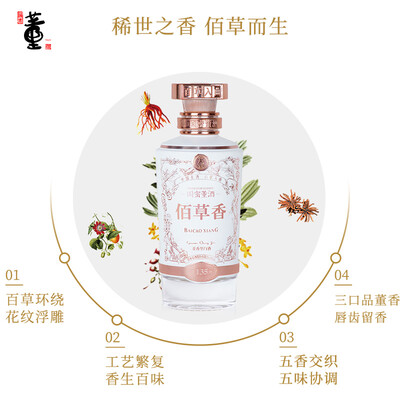 董酒将130余种本草入曲,再搭配纯粮酿制,造就馥郁的董酒香型白酒。口感醇厚绵软,滋味清甜细腻,甘爽味长。