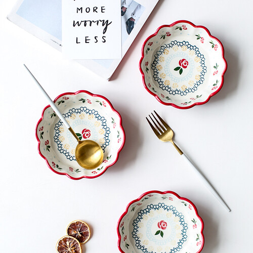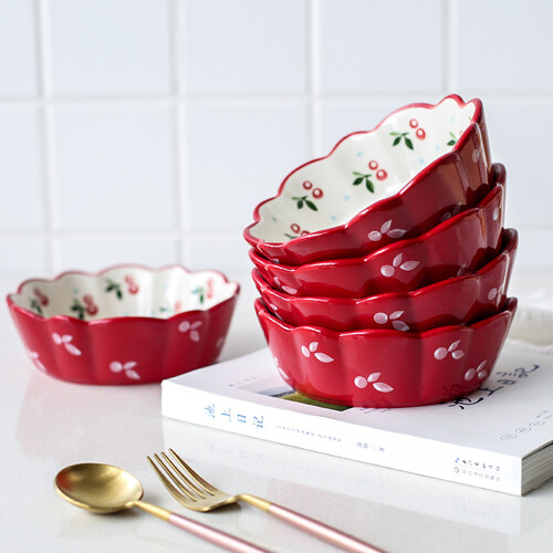 采用樱桃样式设计,经典手绘釉下彩,可爱清新,别有一番滋味,波浪式的花边设计,高低起伏,尽显可爱。