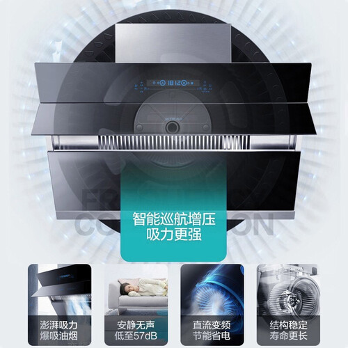 内置无刷直流电机,高速运转动力强性能稳,降低噪音。智能巡航增压,保持排烟顺畅,防止油烟倒灌满足爆炒需求。