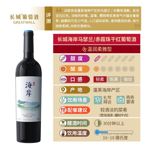 精选赤霞珠、马瑟兰葡萄原料混酿,具有优雅的酒香和温和的口感。单宁细腻柔顺,闭上眼静享微醺的美妙感受。