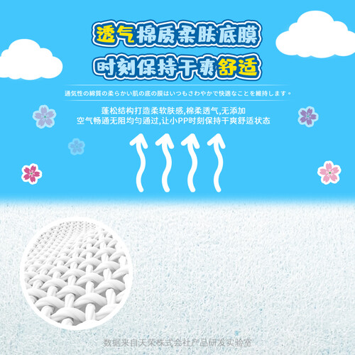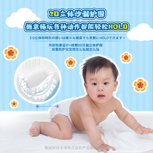 一体式的环绕腰围设计,无拼接缝隙伸展自如,贴合腰身更加舒适。来自日本住友高分子一体芯,吸收量大,锁入尿液防止反渗。