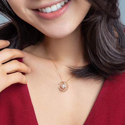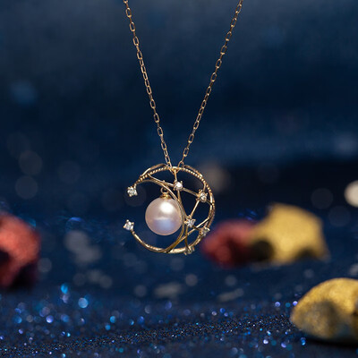 纤细K金编织弯月造型,搭配点点钻石镶嵌,闪烁迷人,且象征浪漫的守护;反向调节扣,不易与头发打结,让您佩戴从容。