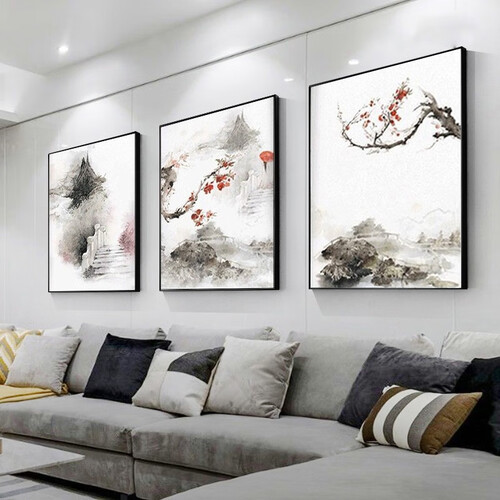 新中式风格的它重在写意,以拼接而成的梅花、远山、小桥等意象构成,意境如羚羊挂角般无迹可寻,蕴含飘渺之美。
