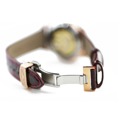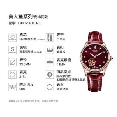 全自动机械机芯走时精准可靠,自动上链省时省心,使用轻松。配有牛皮表带,佩戴舒适,带来柔软的手感。