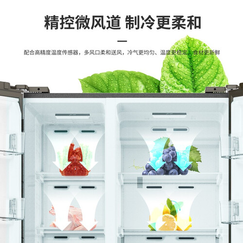 采用多路送风模式,加速内部空气流动,锁住食材的新鲜度。拥有变频制冷技术,温差变化小,才不会发出噪音。