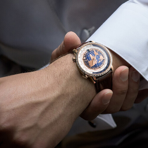 表面融入3D浮雕地球设计,读时更加立体,出席商务场合让你拥有自信。结合蓝宝石的玻璃表镜,经久耐磨,读时光洁透亮。
